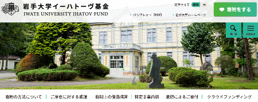| 問合せ先: | 岩手大学法人運営部基金室 019-621-6091 kikin@iwate-u.ac.jp |