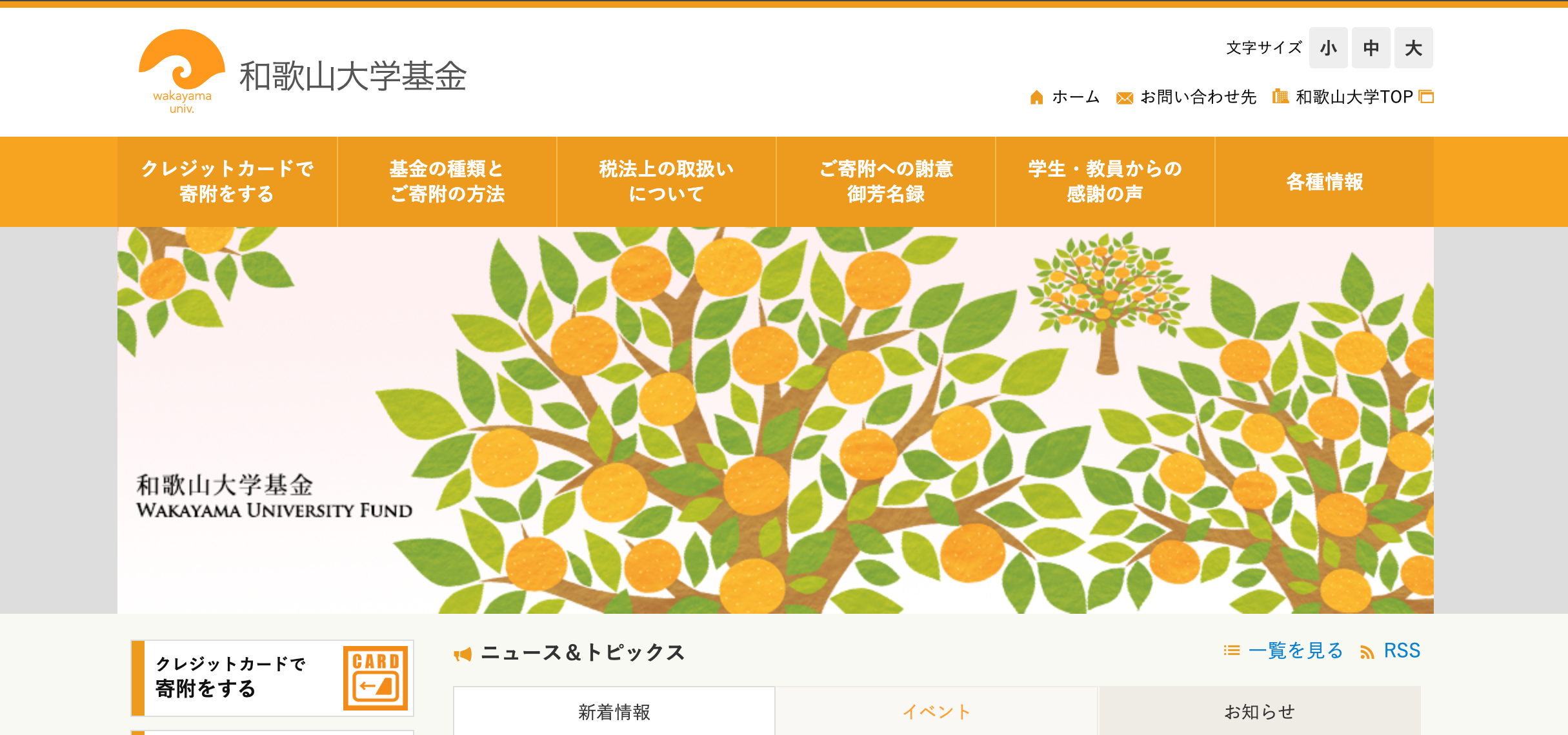 | 問合せ先: | 和歌山大学基金室(担当:総務課渉外係) 073-457-7089 kikin@ml.wakayama-u.ac.jp |